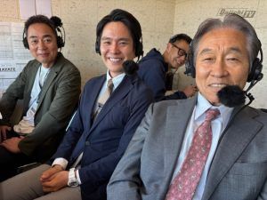 バイク実況は須藤アナ。1号車のサブアナは髙山アナ。