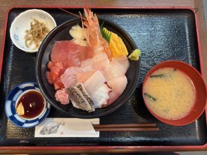 海鮮丼を食べたのですが、どれも臭みがなく新鮮でおいしかったです!また、その中でも太刀魚の刺身は初めて食べたのですが、身が分厚く、食感も楽しくて最高でした!!
