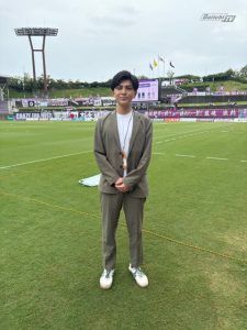 ずっと見ていたDAZNに名前が載ること、小さいころから見続け大好きなJリーグに関われたことがとても嬉しかったです!試合前インタビューは緊張もありましたが、試合後インタビューは選手や監督の目を見て話すことで緊張も解けてリラックスして臨むことができました!