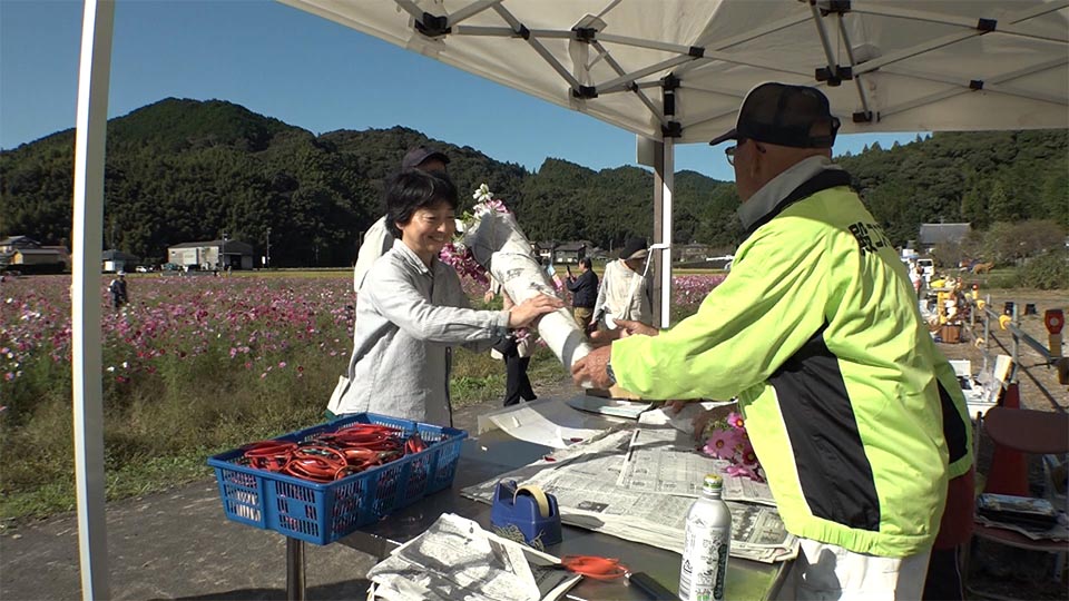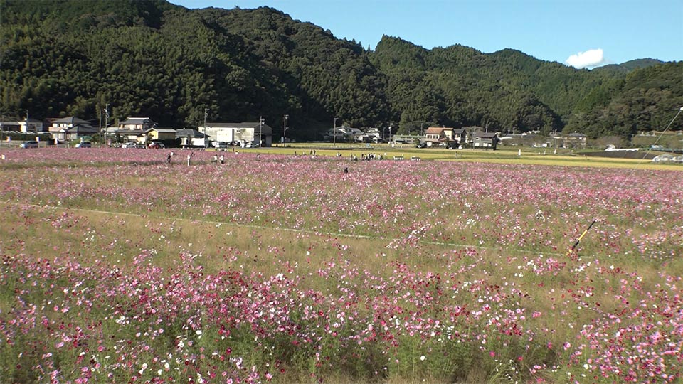 朝比奈さんは、「今後も地元の皆さんに協力してもらって、多くの人にコスモスを見に来てもらい、この町を活性化していきたい。」と思いを馳せる。