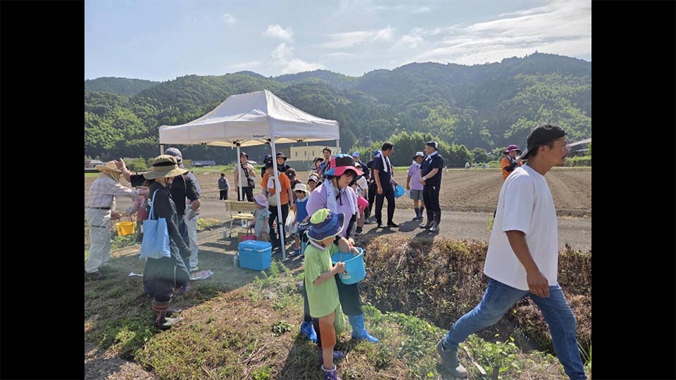 夏の種まきは地元の子供たちも参加して殿地区が盛り上がる。