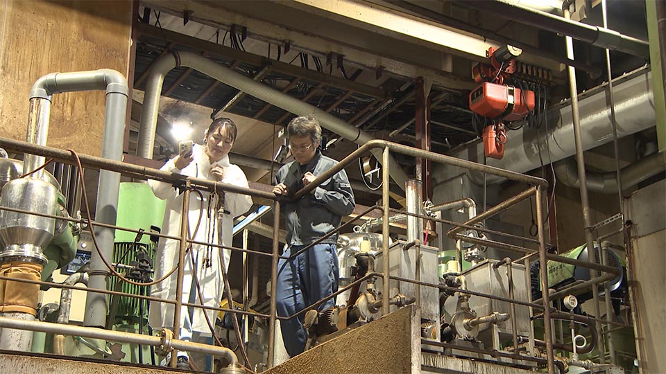 焼津市にある水産加工センター。そこで取材をしている女性は、SNSを通して焼津をナビする、通称「やいナビ」を管理運営している尾原桃さん。