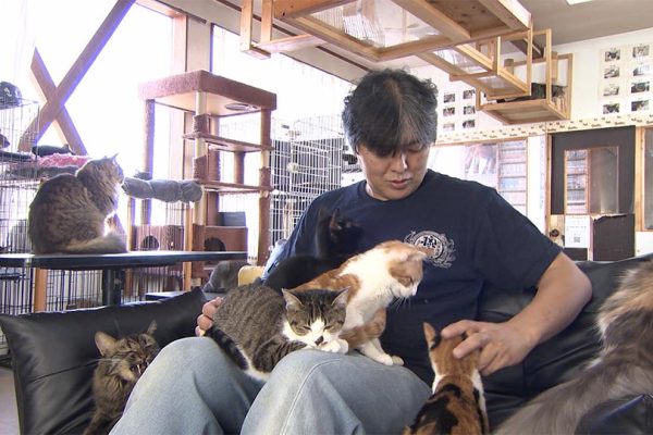 吉田町にある保護猫カフェ「ふにゃり」。 保護猫を中心にした猫カフェだが、その存在はただのカフェではない。運営するのは金丸哲弥さん、保護している猫は約80匹。 猫たちの里親を探しながら里親と繋げていく場所になっている。2019年にオープンし、これまでに約140頭の猫を里親さんのもとへ届けてきた。そして、金丸さんは新たに被災者の猫を預かるボランティアを開始。2024年に発生した能登半島地震では4匹の猫...[続きを読む]